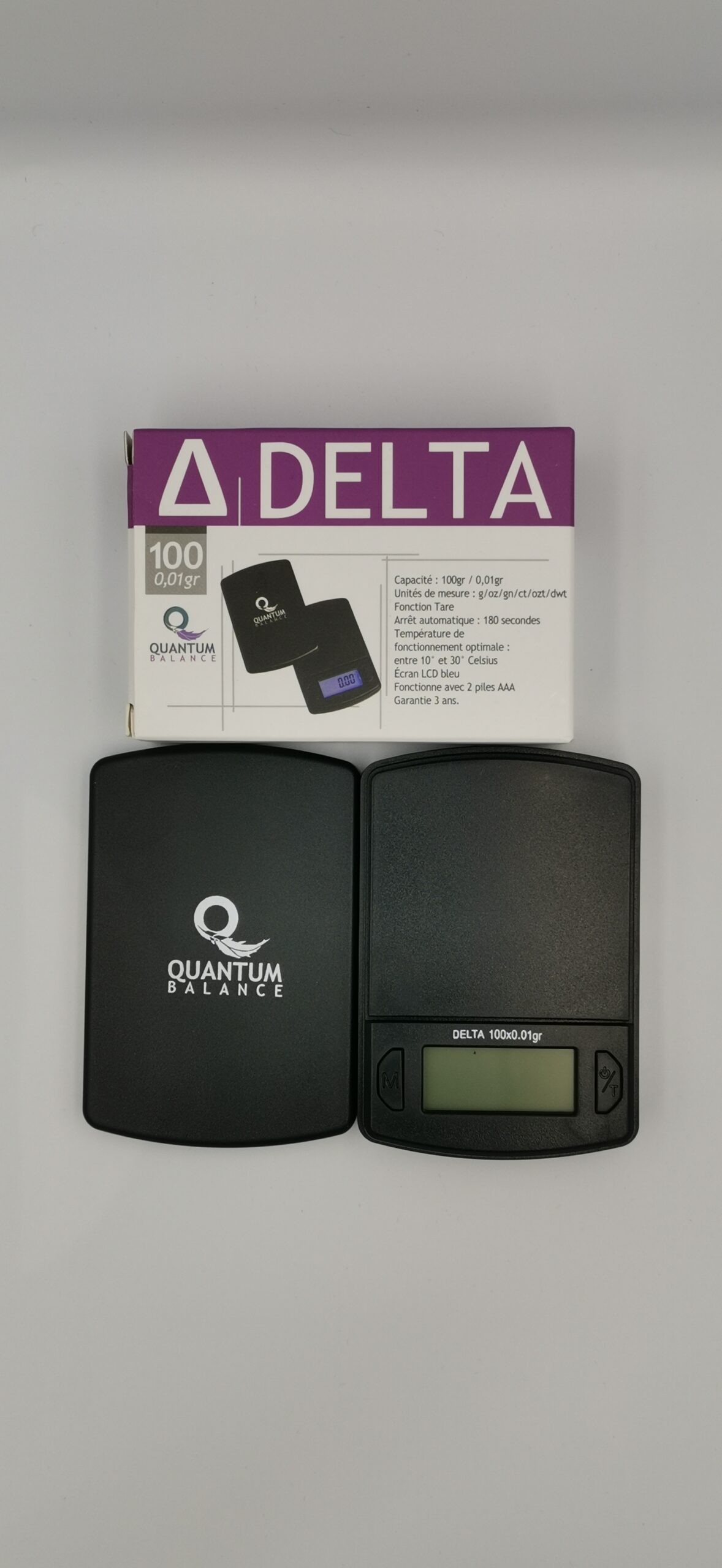 La balance Quantum Gamma 0,01 – 100 g est l’outil parfait pour peser précisément tes fleurs, résines ou épices.