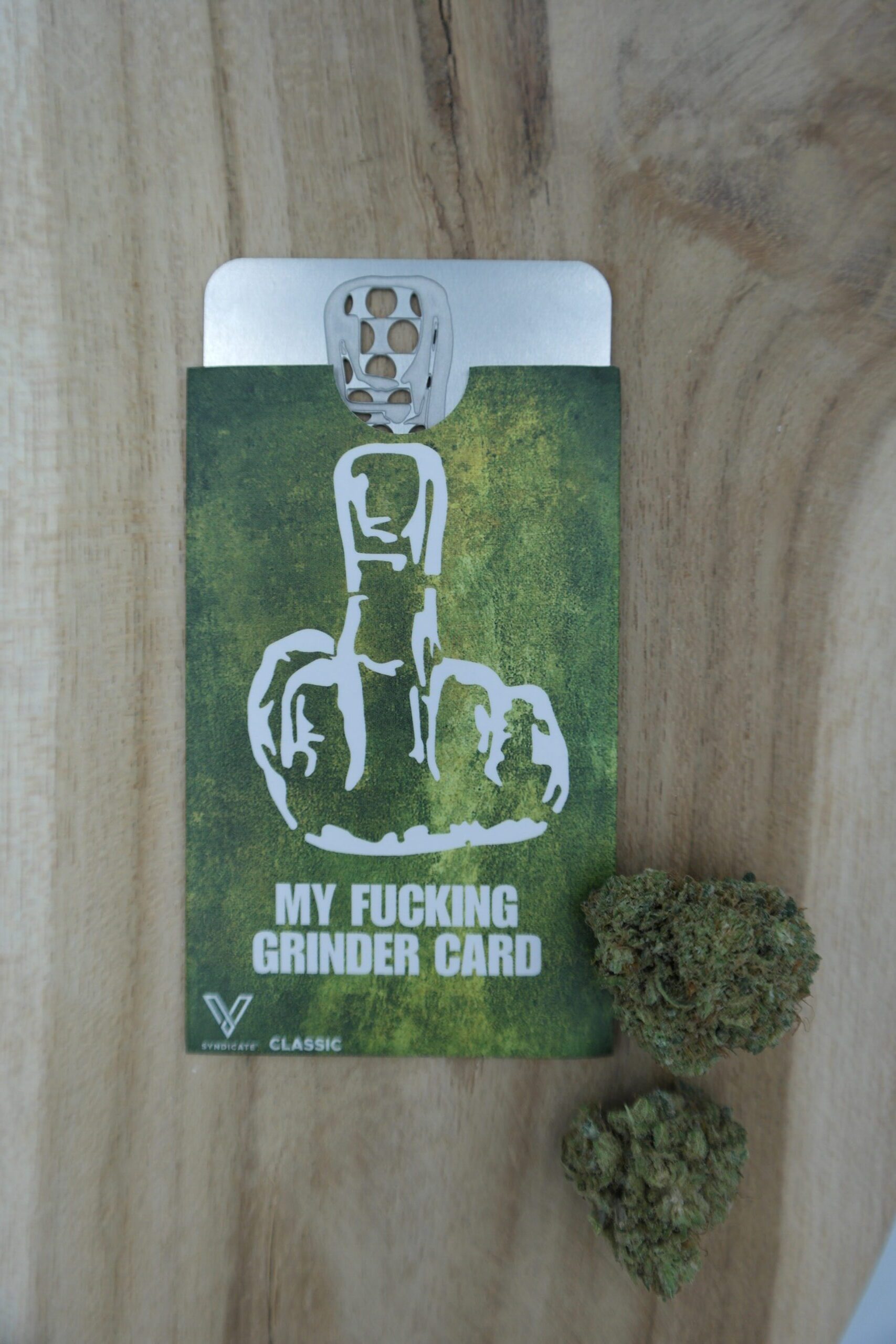 Le grinder carte Middle Finger est un accessoire compact et original, parfait pour broyer tes herbes où que tu sois.