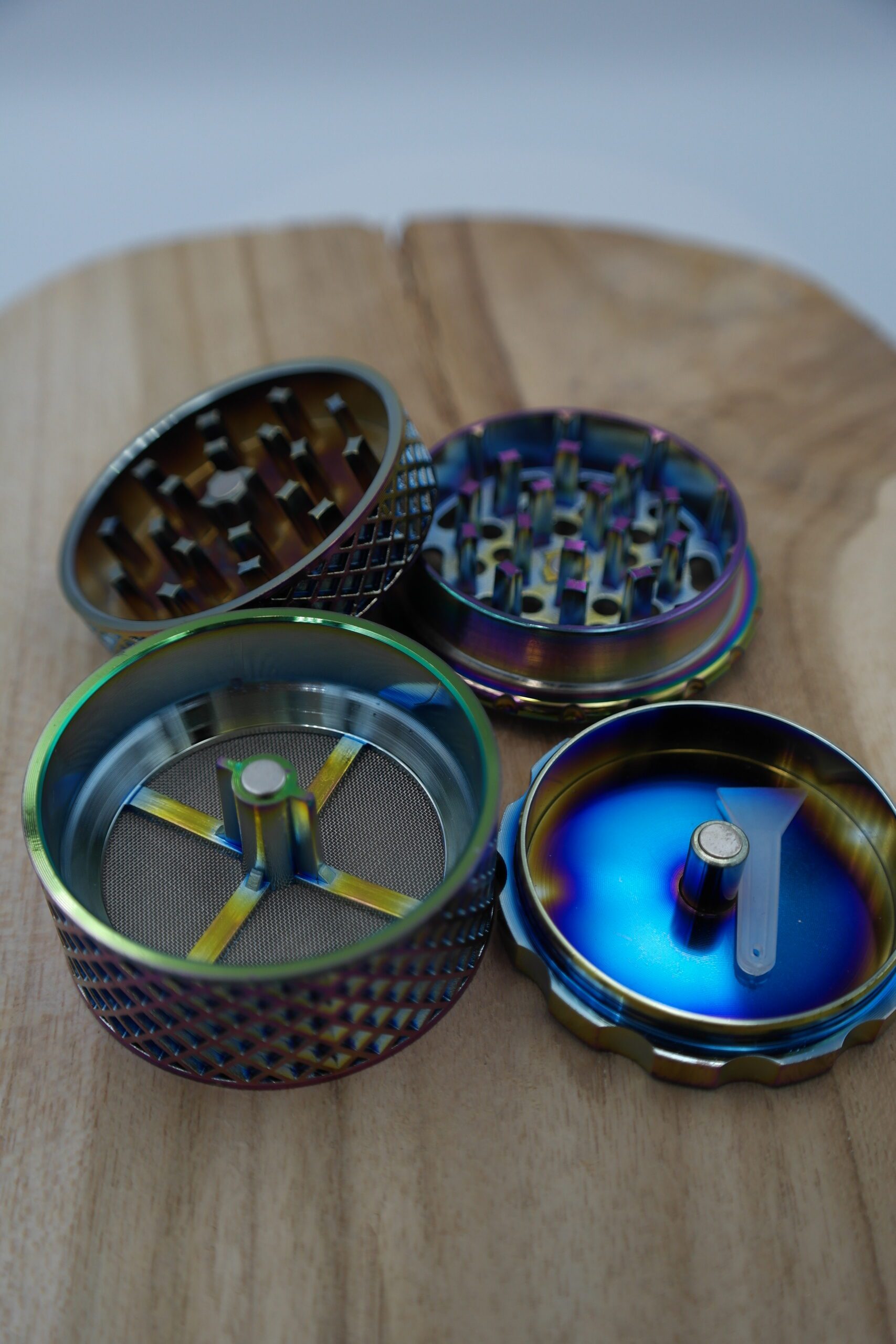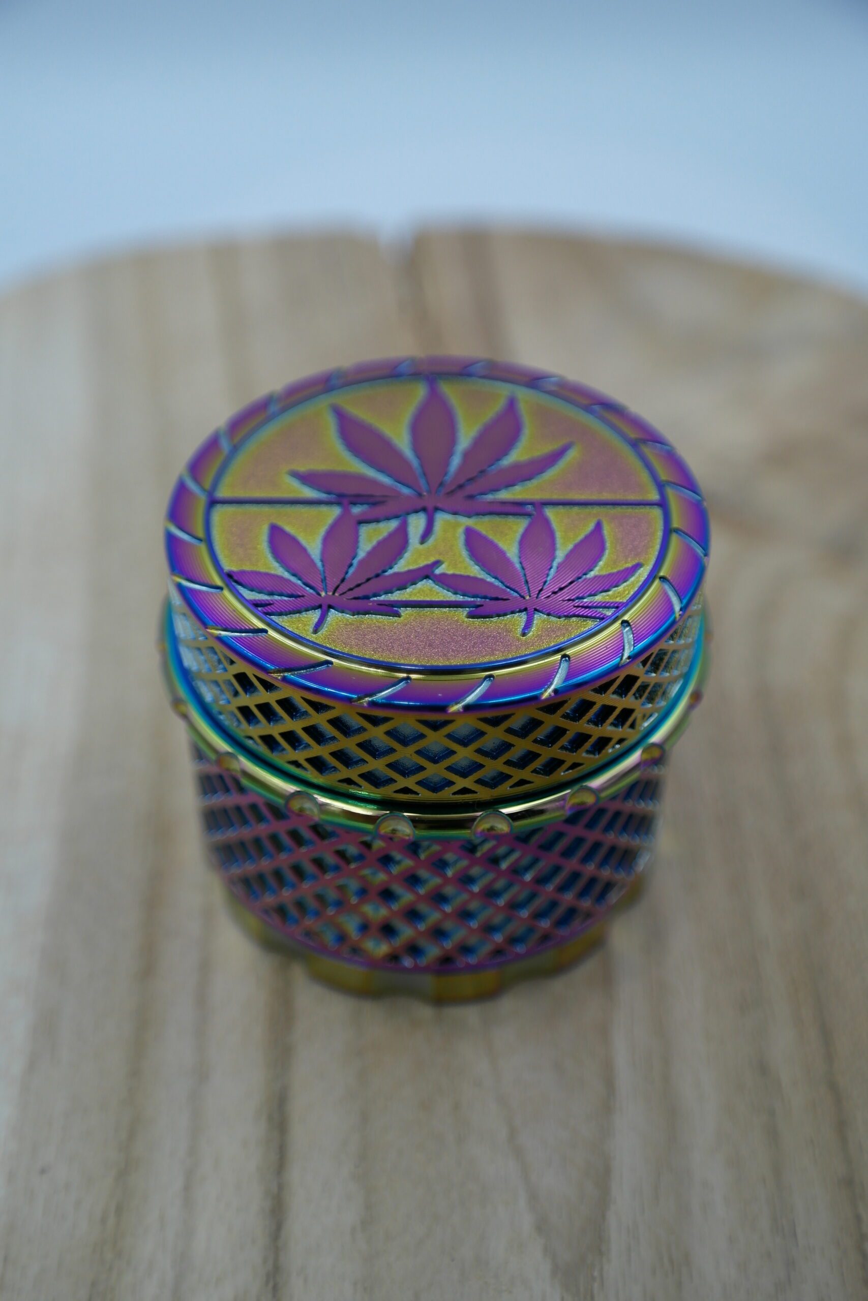🌿 L’accessoire parfait pour les amateurs de produits à rouler est enfin là. Le grinder Rainbow Icy Leaf se démarque immédiatement par son design saisissant en métal brossé irisé ✨, offrant un rendu visuel unique et moderne qui attire instantanément le regard.