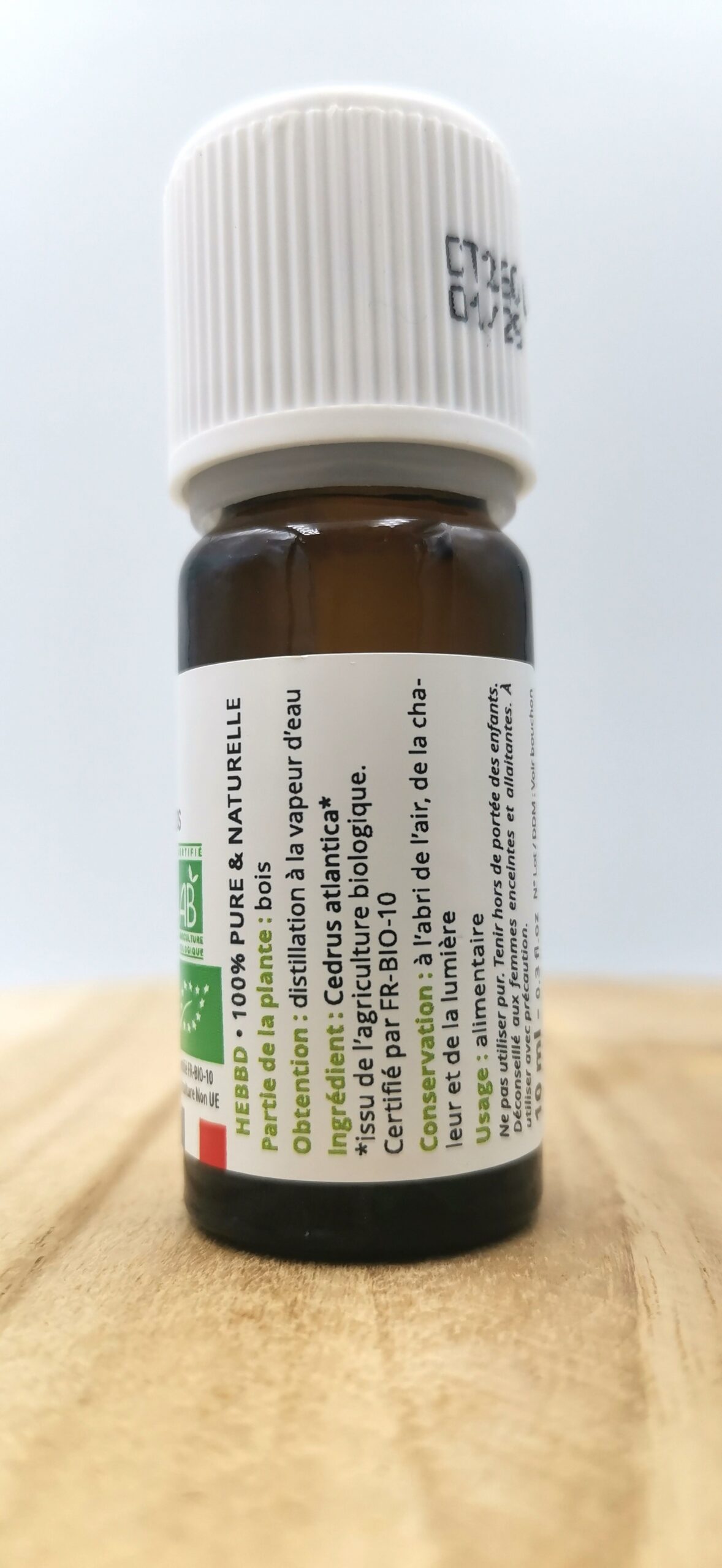 Reconnue pour sa qualité exceptionnelle, cette huile essentielle bio de cèdre de l’atlas est obtenue par distillation à la vapeur du bois, garantissant une pureté optimale et une efficacité remarquable 💧.