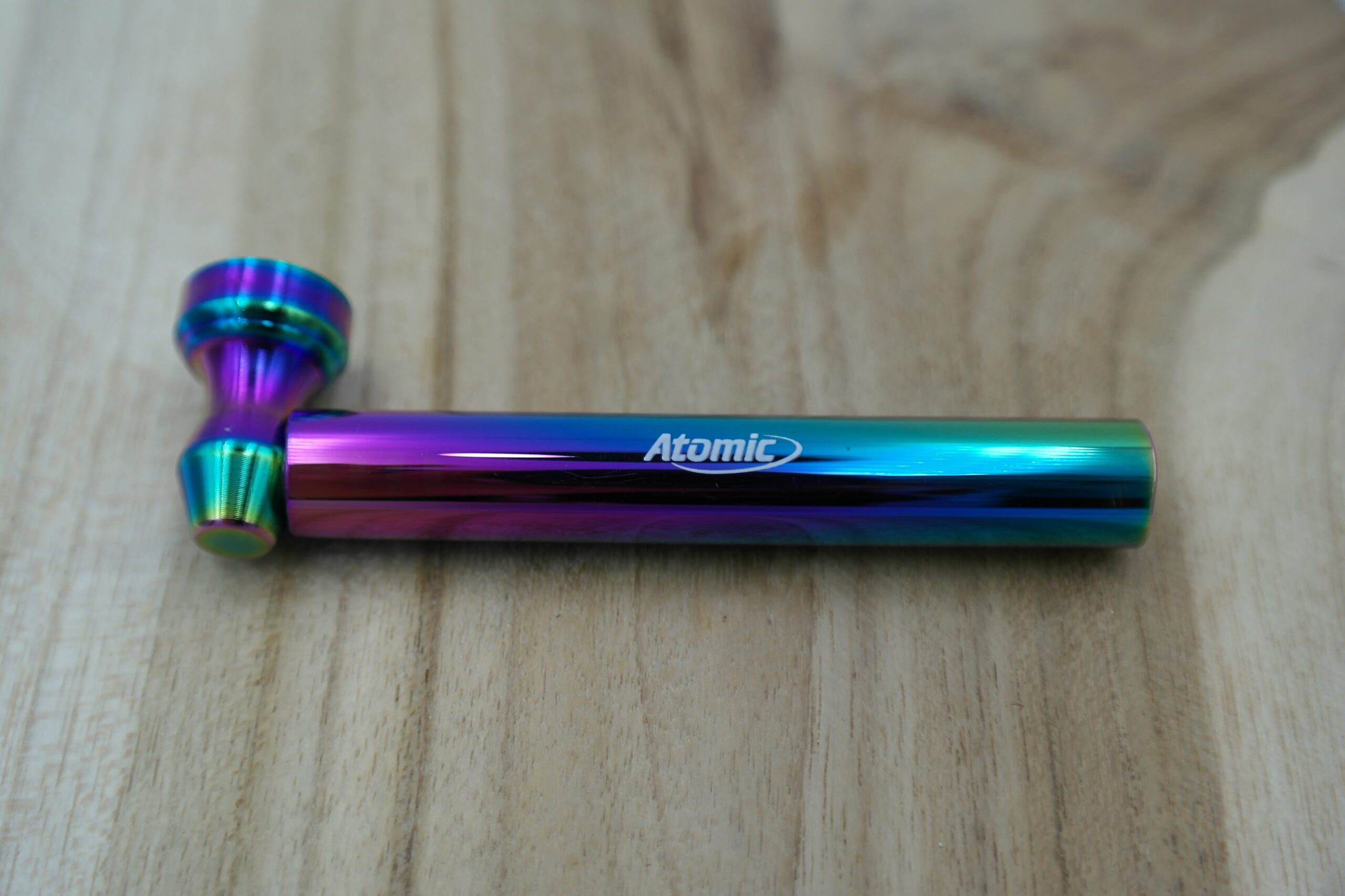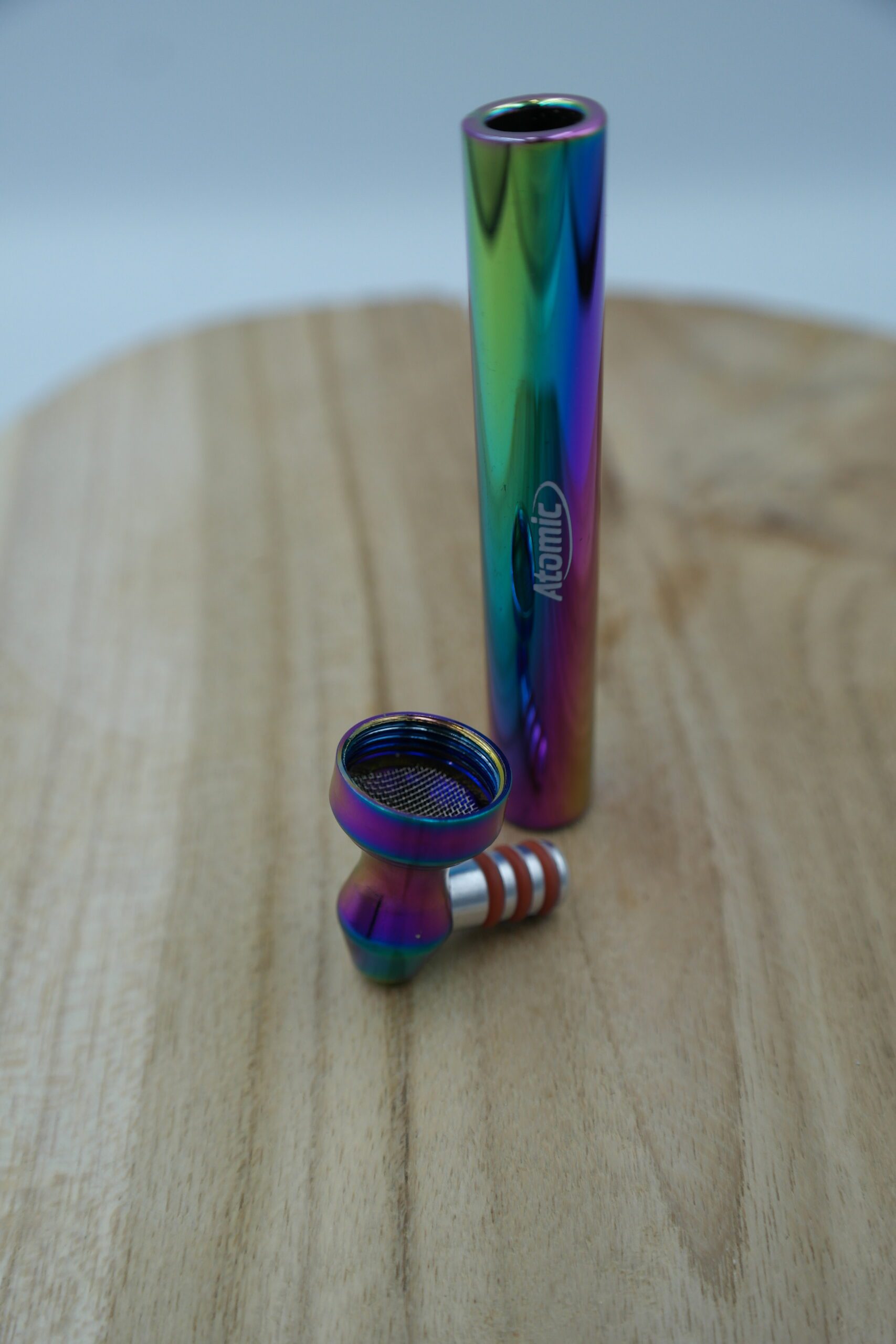 La pipe Atomic Rainbow en verre et aluminium, avec ses 9 cm, est compacte et pratique.
