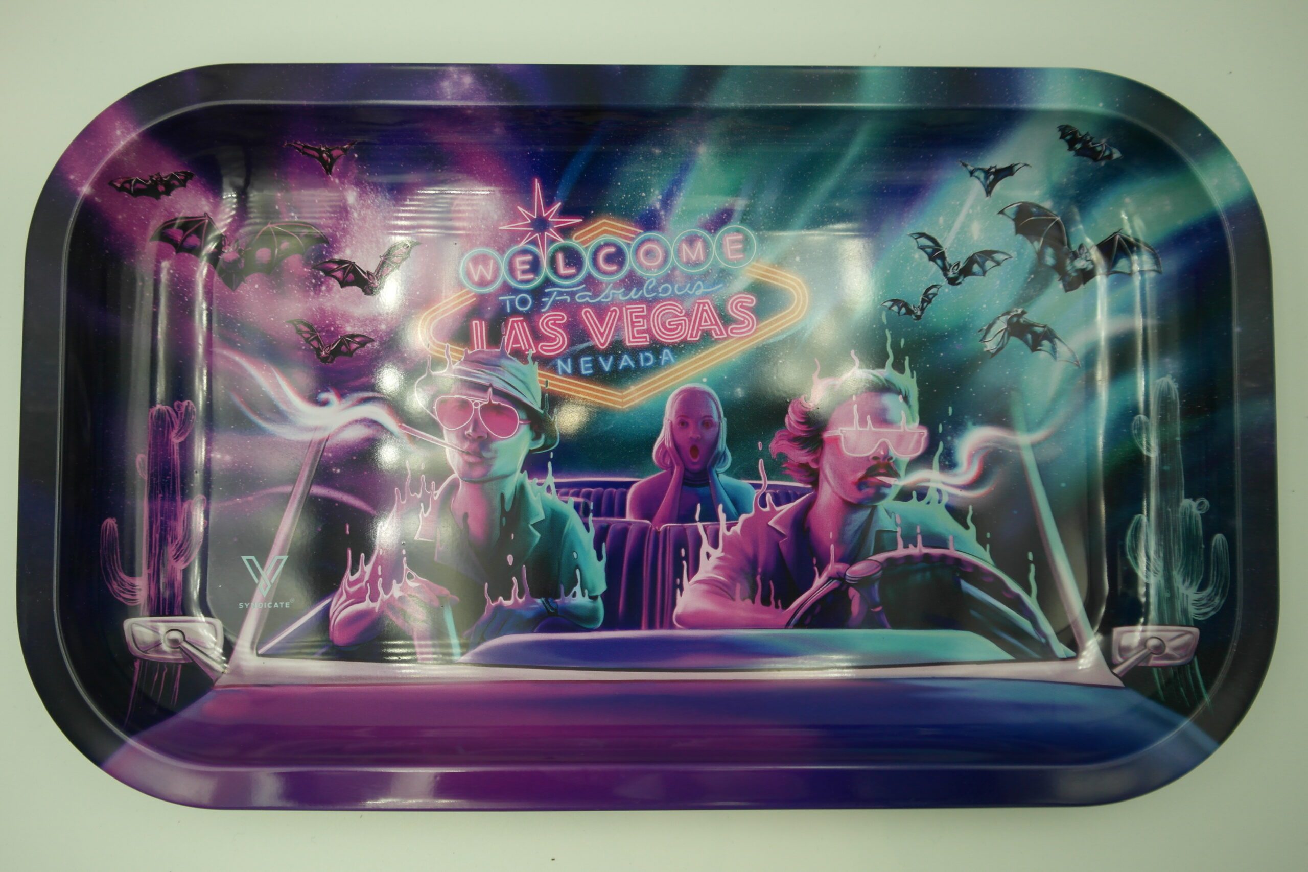 Avec le plateau Bat Country, V-Syndicate vous embarque dans une ambiance psychédélique et décalée, directement inspirée de l’univers culte du film Las Vegas Parano. Un accessoire qui combine style visuel fort et praticité pour vos sessions.