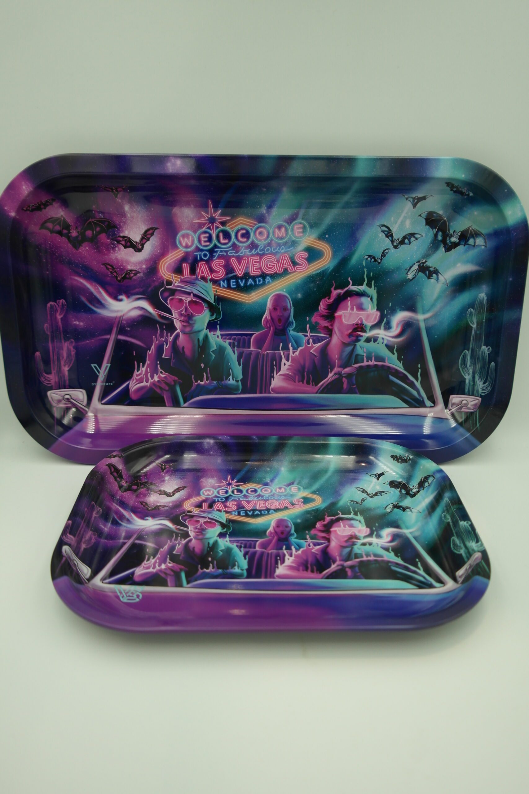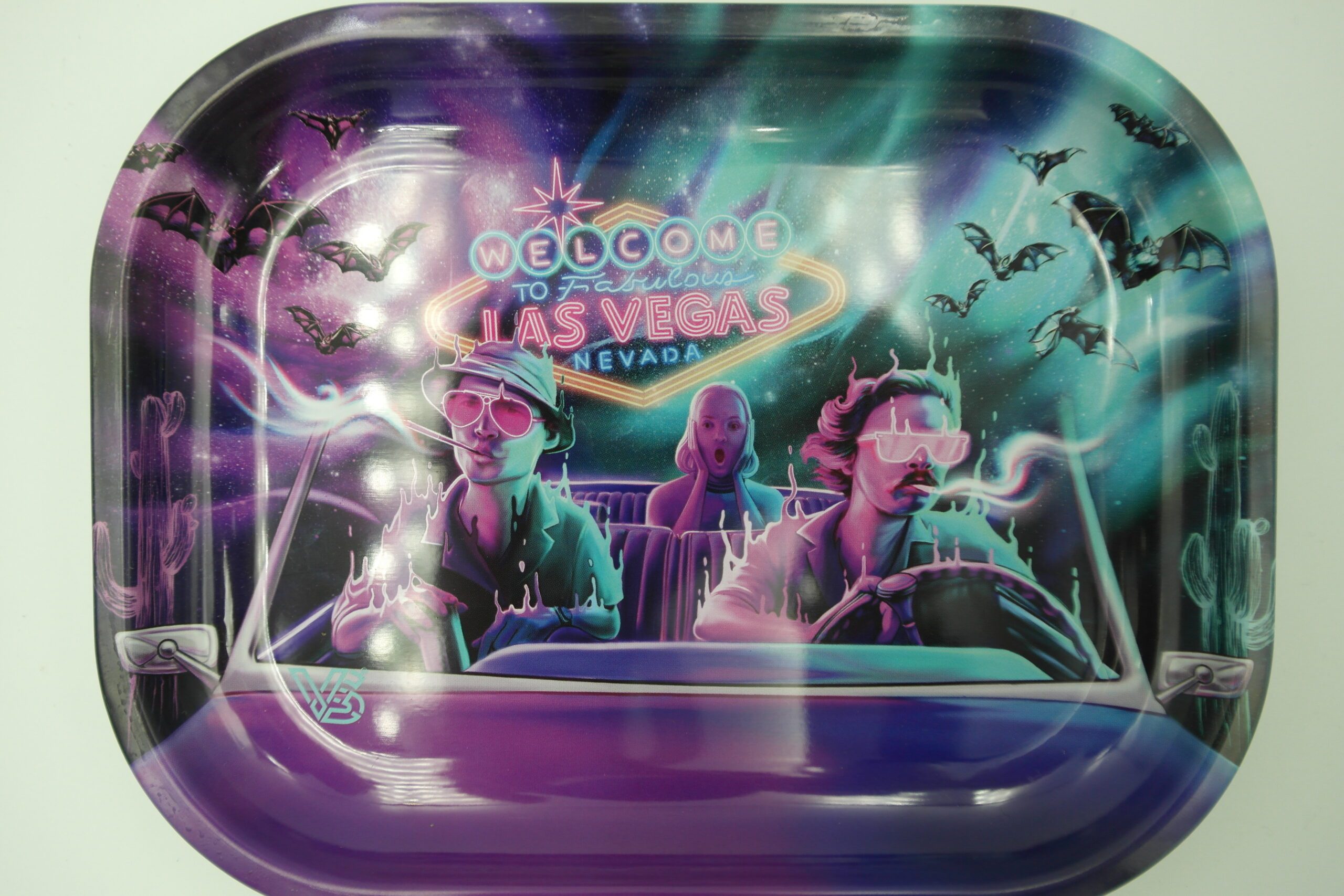 Avec le plateau Bat Country, V-Syndicate vous embarque dans une ambiance psychédélique et décalée, directement inspirée de l’univers culte du film Las Vegas Parano. Un accessoire qui combine style visuel fort et praticité pour vos sessions.