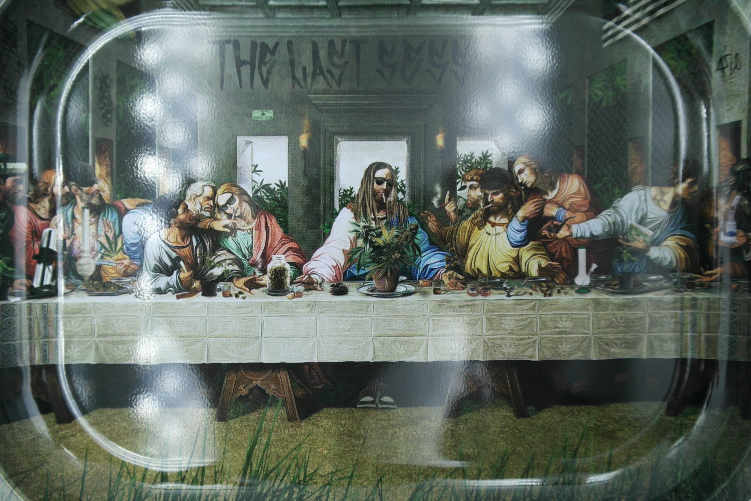 🎨😄 Quand l’art classique prend une tournure humoristique. Ce plateau revisite avec malice une œuvre emblématique de Léonard de Vinci, transformée en illustration décalée qui ne manquera pas d’attirer l’œil.