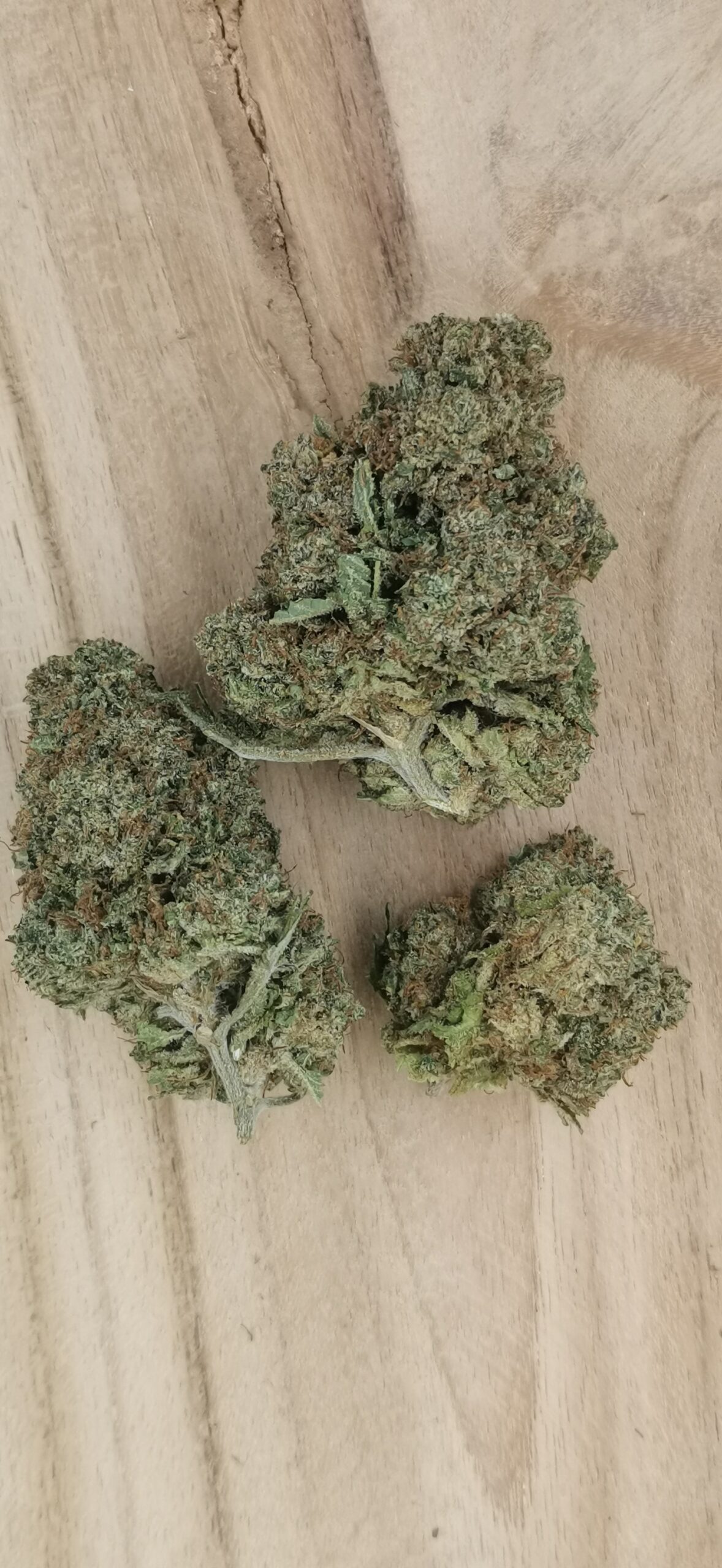 La Sunset Sherbet est une fleur qui évoque la fin d’une belle journée, quand le ciel se teinte d’orange, de rose et de violet, ses têtes sont denses et résineuses, aux nuances vert clair parfois violacées, généreusement couvertes de trichomes scintillants ✨🌿