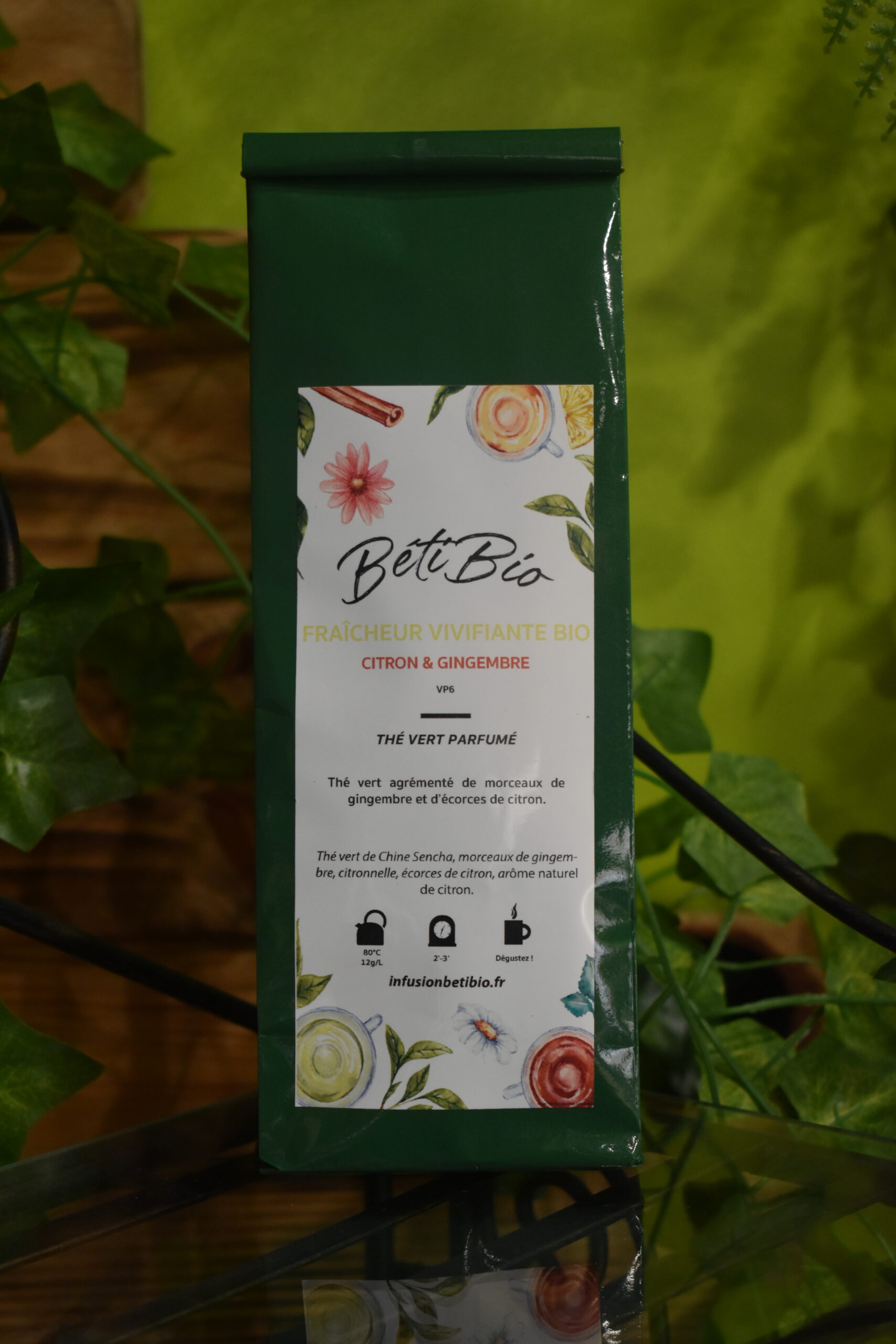 🍃 Thé vert – Fraîcheur Vivifiante Bio – Citron & Gingembre (Béti Bio)